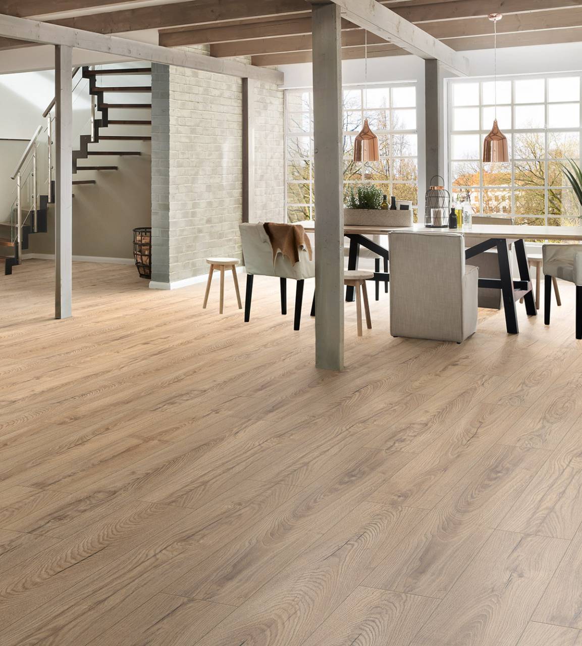 ΠΑΤΩΜΑ LAMINATE 10mm K477 Natural Carpenter Oak, ΚΑΦΕ ΜΠΕΖ, είναι εξαιρετικά ανθεκτικό, διότι αποτελείται από HDF υψηλής πυκνότητας, στο οποίο επάνω πρεσάρεται επιφάνεια LAMINATE. Τοποθετείται εύκολα, γρήγορα (ακόμα και αυθημερόν) πάνω σε λείες και στεγνές επιφάνειες καινούργιων ή παλαιών κατασκευών. Επιπλέει χωρίς να χρειάζεται τρίψιμο ή λουστράρισμα. Μπορεί να χρησιμοποιηθεί άμεσα ακόμα και 24 ώρες μετά την τοποθέτησή του. Καθαρίζεται και συντηρείται εύκολα. Δεν το επηρεάζουν οι καιρικές αλλαγές του περιβάλλοντος (μεταβολές θερμοκρασίας και υγρασίας).