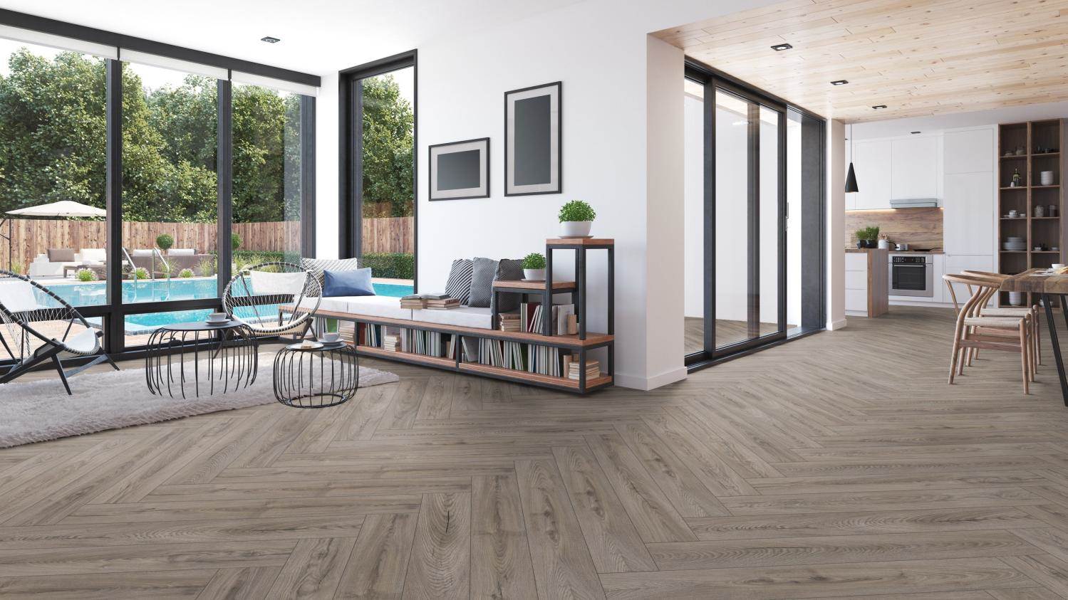 ΠΑΤΩΜΑ LAMINATE 8mm Herringone K488 CM Rutherford Oak (ψαροκόκκαλο), ντεκόρ απομίμηση ξύλο δρυς, σε γκρι καφέ αποχρώσεις, για οικιακή και επαγγελματική χρήση. Εξαιρετικά ανθεκτικό διότι αποτελείται από HDF υψηλής πυκνότητας, στο οποίο επάνω πρεσάρεται επιφάνεια LAMINATE. Είναι αντιστατικό, βραδύκαυστο, τοποθετείται εύκολα, γρήγορα (ακόμα και αυθημερόν) πάνω σε λείες και στεγνές επιφάνειες καινούργιων ή παλαιών κατασκευών.