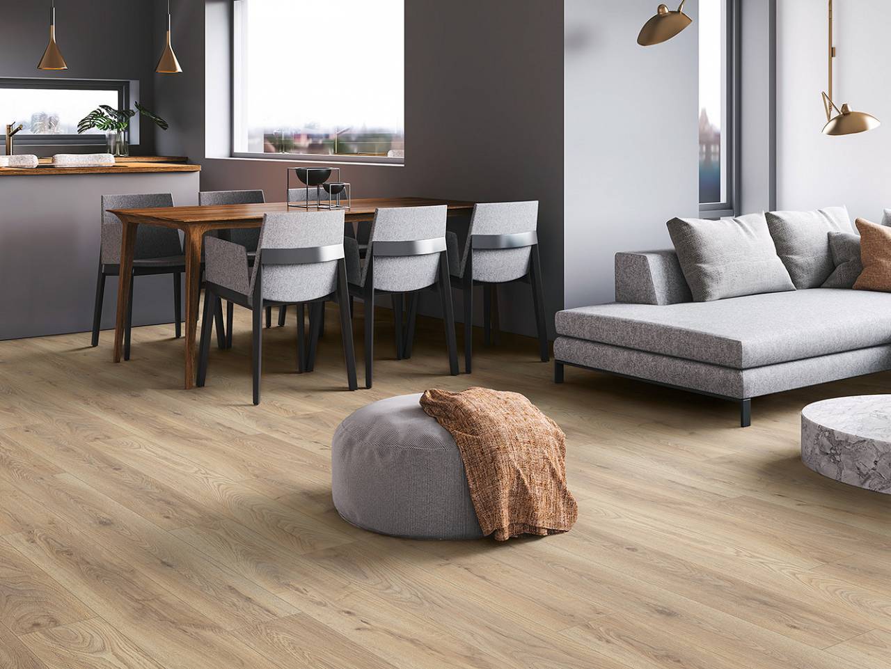 ΠΑΤΩΜΑ LAMINATE 8mm K452 Ashland Oak, ΜΠΕΖ, είναι εξαιρετικά ανθεκτικό, διότι αποτελείται από HDF υψηλής πυκνότητας, στο οποίο επάνω πρεσάρεται επιφάνεια LAMINATEΤοποθετείται εύκολα, γρήγορα (ακόμα και αυθημερόν) πάνω σε λείες και στεγνές επιφάνειες καινούργιων ή παλαιών κατασκευών. Επιπλέει χωρίς να χρειάζεται τρίψιμο ή λουστράρισμα. Μπορεί να χρησιμοποιηθεί άμεσα ακόμα και 24 ώρες μετά την τοποθέτησή του. Η κανονική σανίδα έχει αντιστατική και αντιβακτηριακή επίστρωση που παρέχει εύκολη συντήρηση και υγιές περιβάλλον. Καθαρίζεται και συντηρείται εύκολα.